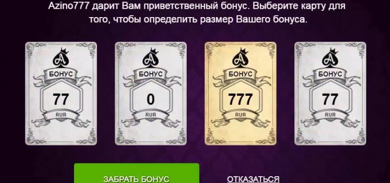 Бонус при регистрации 777 рублей, который выигрывается в карты, его дают только один раз. Если у тебя уже были аккаунты то бонус не получишь по правилам бонусной политики казино.