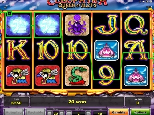 Игровой автомат Cleopatra – Queen of Slots – это оригинальный видео слот с 5 барабанами. Уступают этому параметру такие разработки аппаратов, как La Fiesta, Wild West, Party Line и др. 20 активных линий ставят видео слот на порядок выше от таких разработок, как King of cards, Fruit Cocktail , Garage , Crazy Monkey и др.
