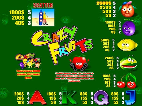 Постоянно растущего денежного приза в видео слоте Crazy Fruit нет. Максимальная фиксированная выплата достигает 2000.