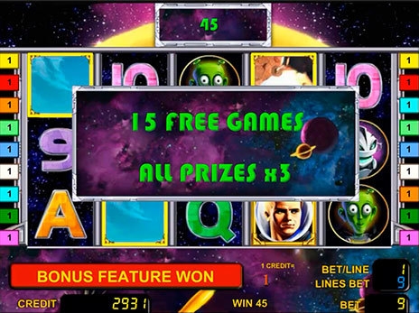 Кроме того, на вращающихся барабанах можно встретить номиналы игральных карт, симпатичного землянина, его юную белокурую спутницу, инопланетное существо. Именно эти картинки помогают формировать выигрышные цепочки.