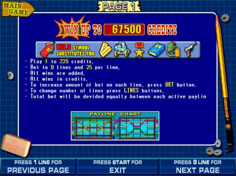 Наивысшая ставка на спин в игровом автомате достигает 225 долларов США. Воплотила в жизнь разработку аппарата организация Igrosoft.