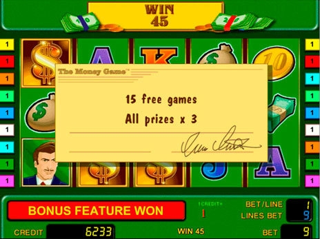 Тематических бонусных раундов в видео слоте The Money Game не предусмотрено. Бонусная политика предлагает клиенту лишь бесплатные вращения.