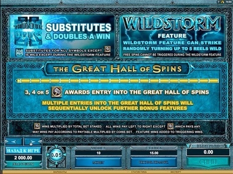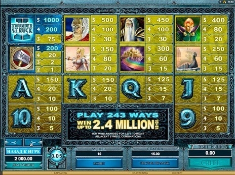 Фиксированного и прогрессивного джек пота в игровом автомате Thunderstruck II нет.